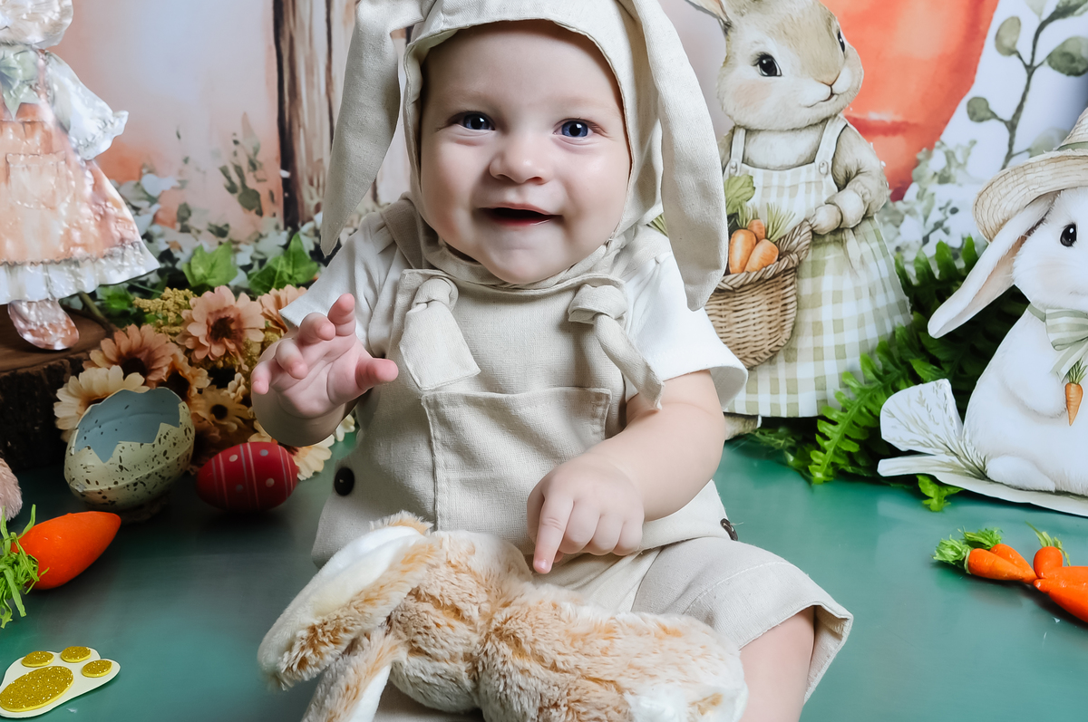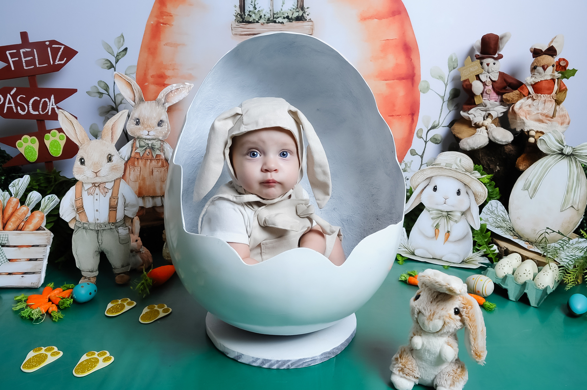 Entre sorrisos, descobertas e muita fofura, o Bernardo veio deixar nosso cenário de Páscoa ainda mais especial.